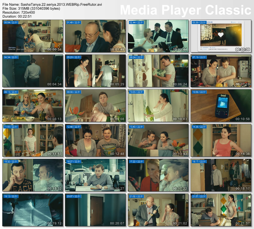 Оригинальное название: СашаТаня Год выхода: 2013 Жанр: Ситуационная комедия Режиссер: Михаил Старчак В ролях: Андрей Гайдулян, Валентина Рубцова, Алексей Климушкин, Елена Бирюкова, Татьяна Орлова, Андрей Лебедев, Ксения Хаирова, Олег Новиков, Сергей Рудзевич и др. Описание: «САШАТАНЯ»– история о жизни молодой семьи. Герои старого «Универа» Саша и Таня окончили университет. Теперь у них совсем другие заботы. Принципиальный Саша наотрез отказывается от финансовой помощи отца – рублевского олигарха Сильвестра Андреевича. Сашина реальность – квартира в многоэтажке на окраине города, работа на побегушках в офисе, жена-домохозяйка, плачущий ребенок и жизнь от зарплаты до зарплаты. 1 серияПосле свадьбы и рождения ребенка у Саши и Тани начинается полноценная, самостоятельная семейная жизнь. Они снимают квартиру в одном из спальных районов Москвы. Сильвестру Андреевичу это, разумеется, не нравится. Но недовольство папы-олигарха не мешает молодым строить планы на будущее, и главный из них - новоселье!Качество: HQ SATRip Видео: DivX, 720x400, 25 fps, 1650 kbit/s Аудио: MPEG Layer 3, 44100 Hz, 128 kbit/s, stereo Продолжительность: 00:24:50 Перевод: Не требуется Размер:300 MB   Вам необходимо ЗАРЕГИСТРИРОВАТЬСЯ НА ФОРУМЕ, чтобы скачать файл.