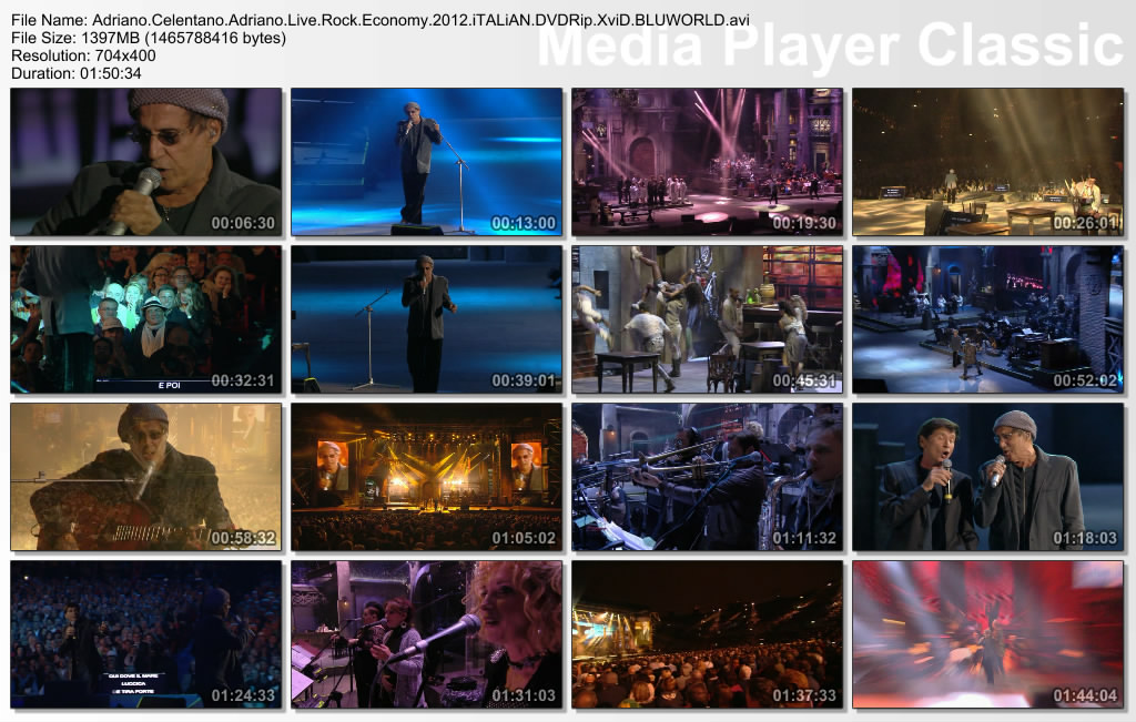 Описание: Rock Economy (англ. Рок-экономи) — первый сольный концерт итальянского певца и киноактёра Адриано Челентано после восемнадцатилетнего перерыва, который прошёл 8 и 9 октября 2012 года в знаменитом амфитеатре Арена ди Верона. В концертной программе были представлены как старые хиты («Soli», «Azzurro», «Prisencolinensinainciusol»), так и песни из более поздних альбомов. На сцене вместе с Челентано выступили 18 музыкантов, 20 бэк-вокалистов и 25 танцоров. Показатели Canale 5, который транслировал концерт в прямом эфире, стали лучшими в прайм-тайм за последние пять лет — шоу смотрело девять миллионов зрителей.